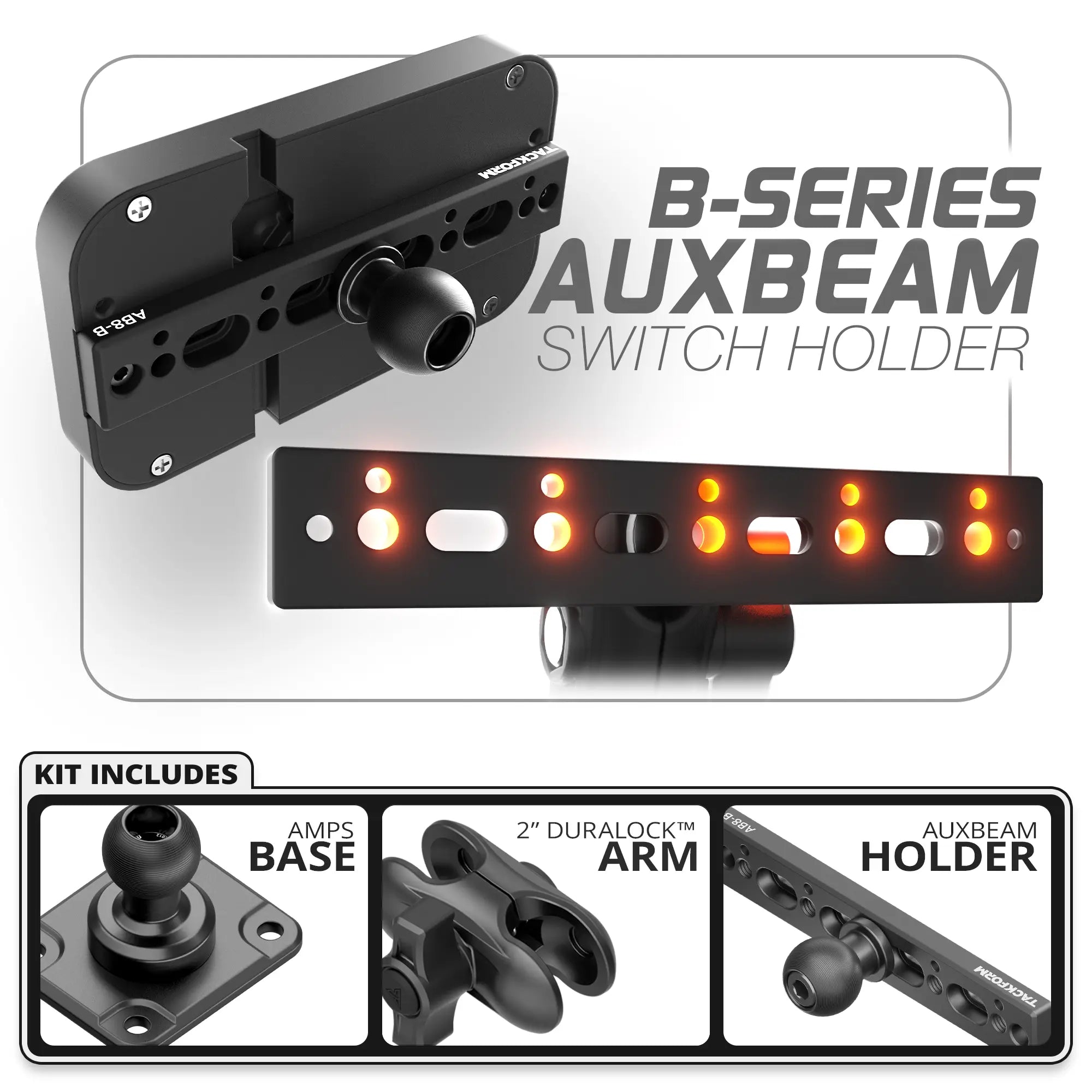 This mount replaces the factory Auxbeam bracket, providing Type-B connection points for versatile center, left, or right offset positioning of your switch panel. See compatibility info for more details.