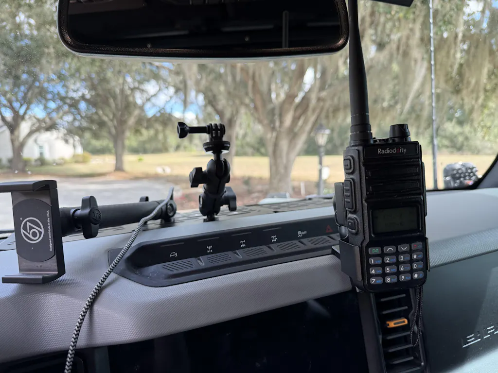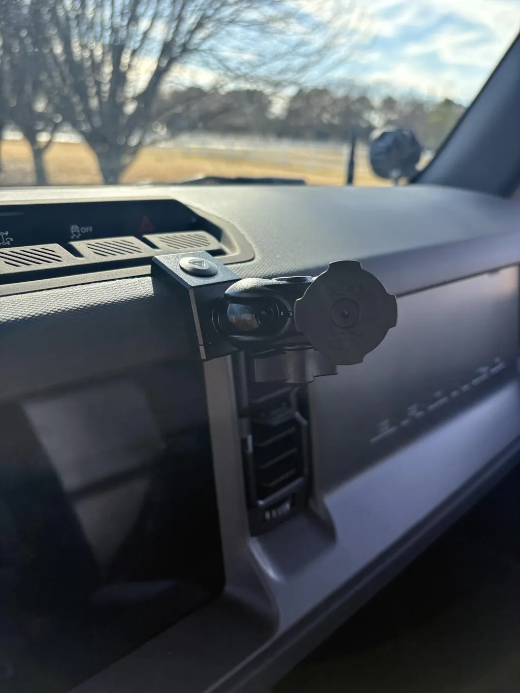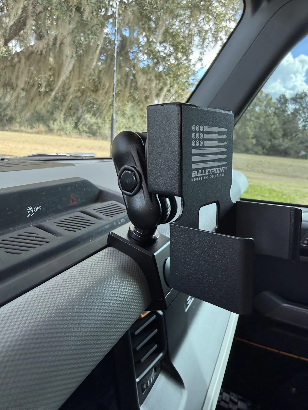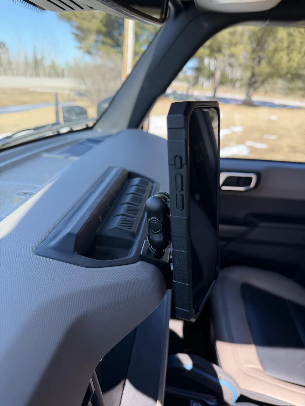 As an excellent solution for those seeking a mount with a smaller footprint, our Top Dash Clip seamlessly attaches to the front of your Bronco's dashboard, just above the screen. With its innovative design, the Top Dash Clip offers an extended installation range, giving you greater flexibility in positioning it across a wider area of your dashboard—surpassing the capabilities of comparable mounts, which typically provide only half the range.