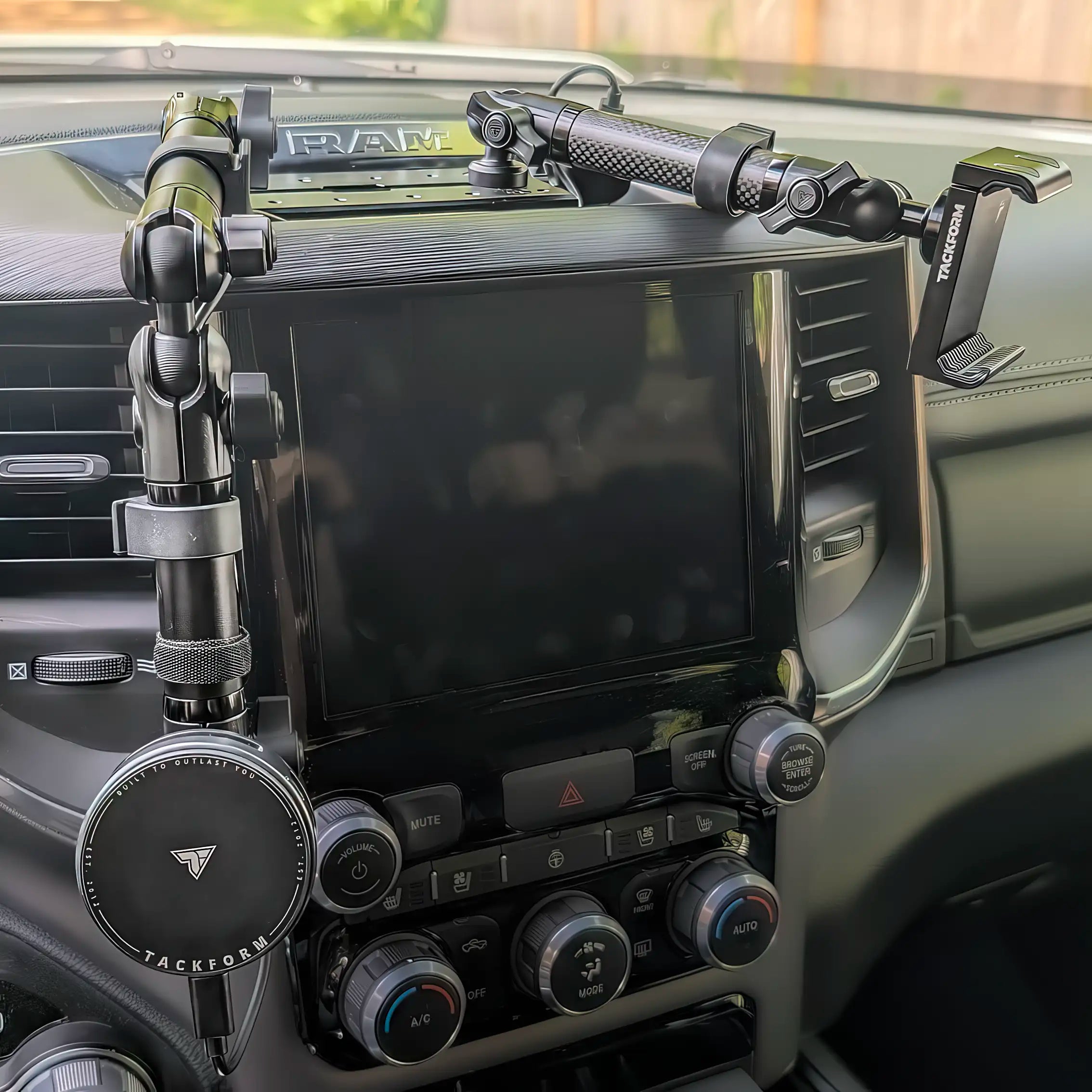 I have to admit that when I purchased my new Ram 1500, my first thought when it came to a rugged phone mount was Bulletpoint. However, my car salesman,Mateo, at Naperville Chevrolet told me about a local company with great phone holders and other mounting solutions from Tackform. I looked up the website and read the reviews. I figured heck, what do I have to lose. I love supporting American made and local companies. Well, the Traxx mounting system with the MagSafe charging base shipped quickly and before I knew it a package arrived. Installation was easy with the provided link for an instruction video. This is an amazing design with unlimited options for all of my needs. I will definitely recommend to everyone I know!