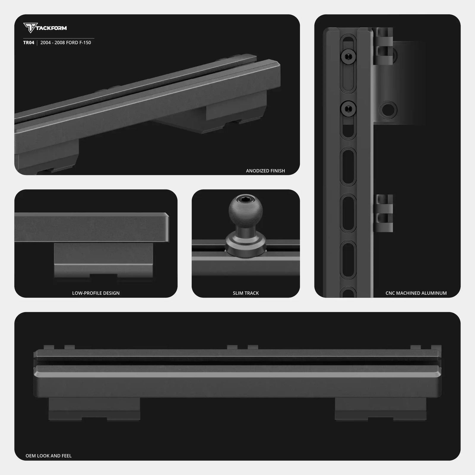 Upgrade your 2004-2008 Ford F-150 with the most rugged and dependable ALL-METAL dash mount bracket on the market. Engineered to meet the demands of both on-and off-road drivers, each dash bracket is built from high-grade 6061-T6 aluminum and CNC machined for enhanced strength and durability. Using laser scanning technology, our dash brackets are precisely designed to match the complex contours of your dashboard, while the hardcoat anodized finish provides an OEM look and feel, seamlessly blending with your vehicle's interior.