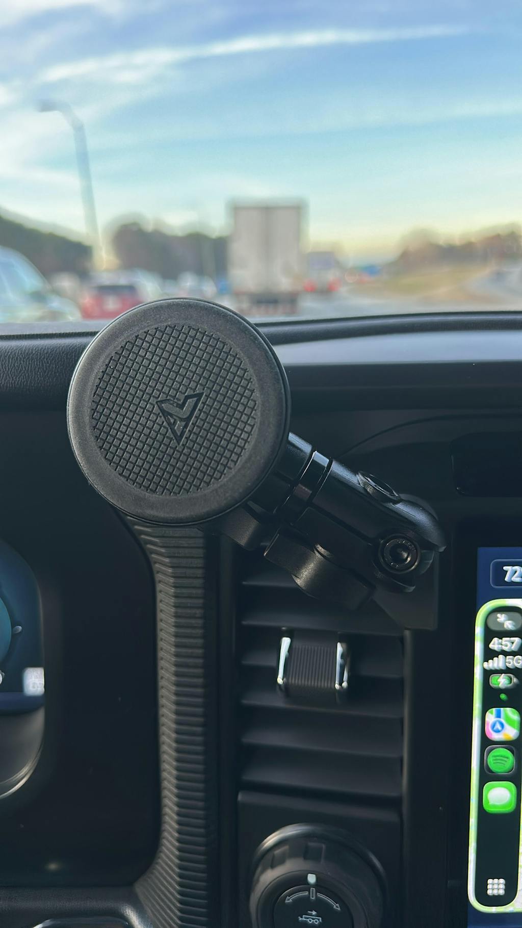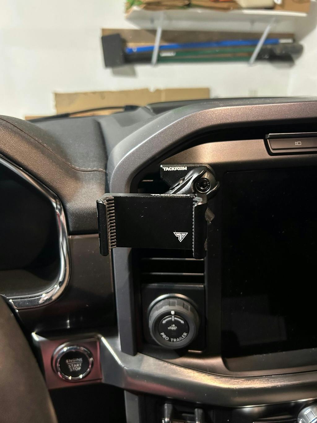 Upgrade your 2021-2025 Ford F-150 (including Raptor) and 2023-2025 Ford Super Duty with the most rugged and dependable ALL-METAL vent mounted magnetic phone holder setup on the market. Engineered to meet the demands of both on-and off-road drivers, each vent mount kit is built from high-grade 6061-T6 aluminum and CNC machined for enhanced strength and durability. Using laser scanning technology, our vent brackets are precisely designed to match the complex contours of your vent bezel, while the hardcoat anodized finish provides an OEM look and feel, seamlessly blending with your vehicle's interior.