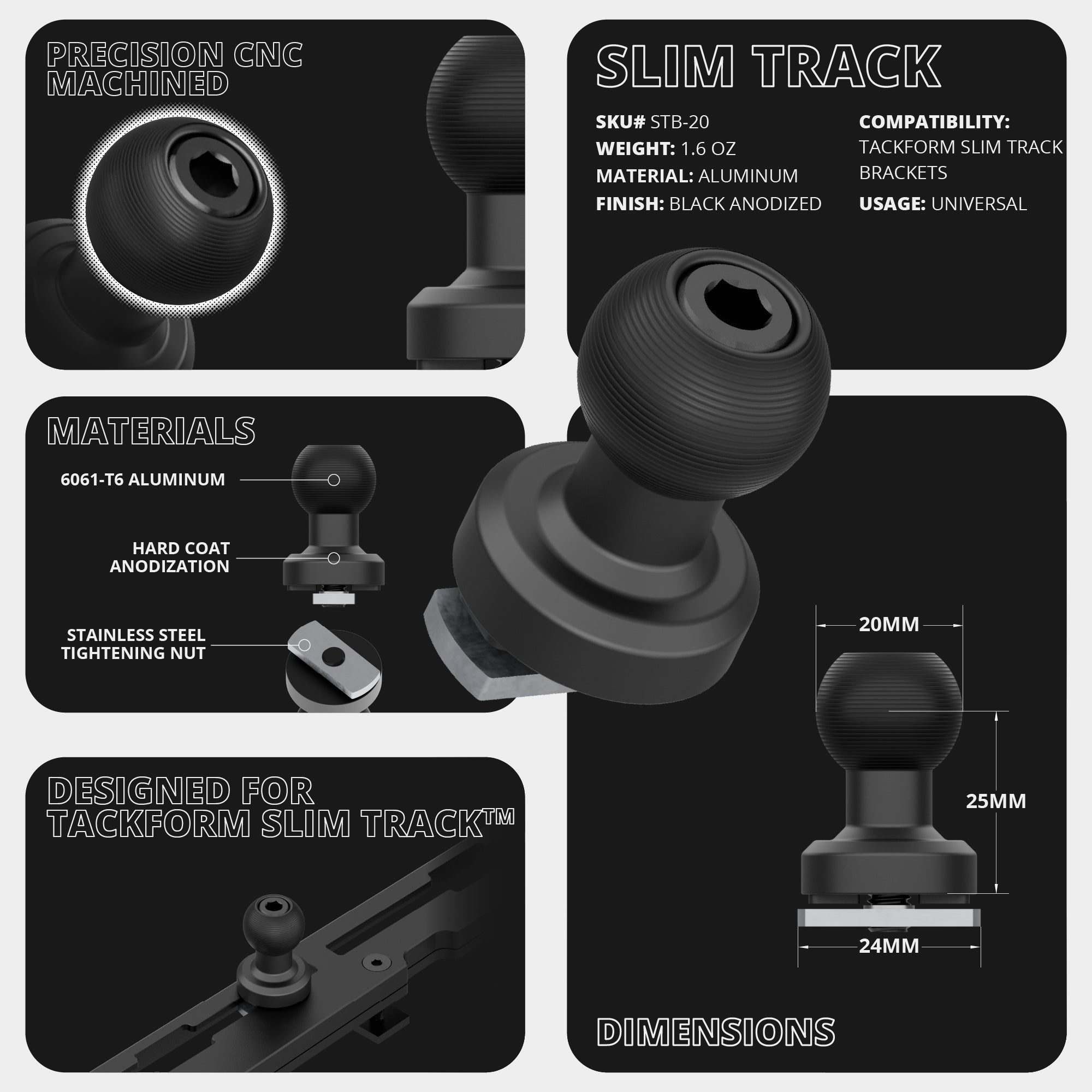 While 'grid-style' dash mounts are trendy, they can be a nightmare when trying to install, move, or reposition your mounting bases. These systems often require partial disassembly of the dash mount to access the nuts beneath the panel. With our intuitive Slim Track system, you’ll never have to fumble with nuts again. Capable of comfortably holding multiple devices, the Slim Track system features a CNC-machined top plate with an integrated track system, allowing you to quickly add, remove, or reposition your mounts in seconds.