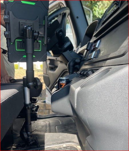 Tackform Impact Series™  Mega-Duty Telescoping Seat Rail Tablet Mount for Truck.
