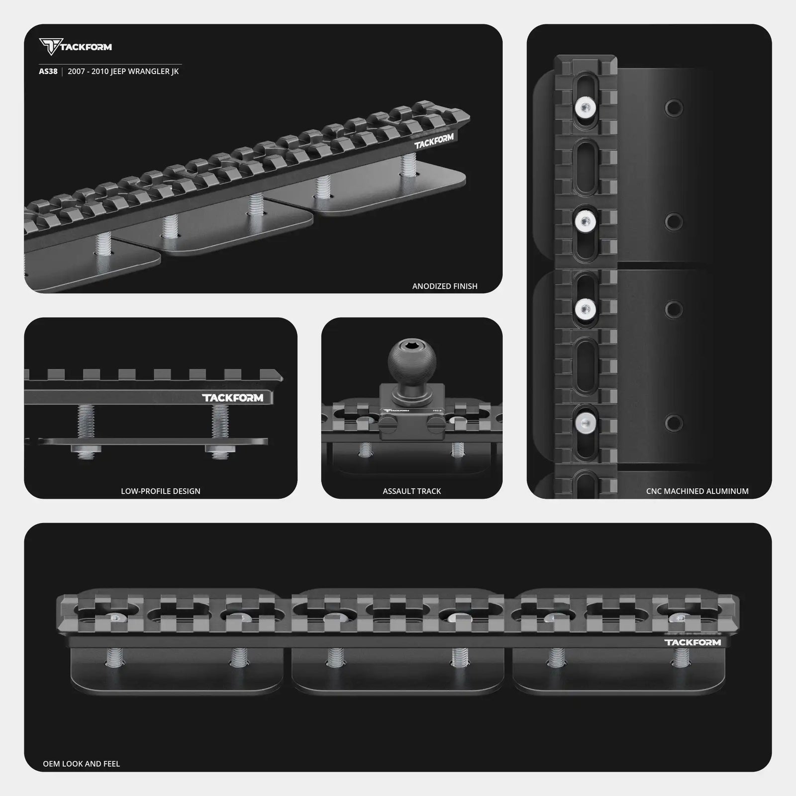 Upgrade your 2007-2010 Jeep Wrangler JK with the most rugged and dependable dash bracketed phone, CB, and tablet mount setup on the market. Engineered to meet the demands of both on-and off-road drivers, each dash bracket is built from high-grade 6061-T6 aluminum and CNC machined for enhanced strength and durability. The hardcoat anodized finish provides an OEM look and feel, seamlessly blending with your vehicle's interior.