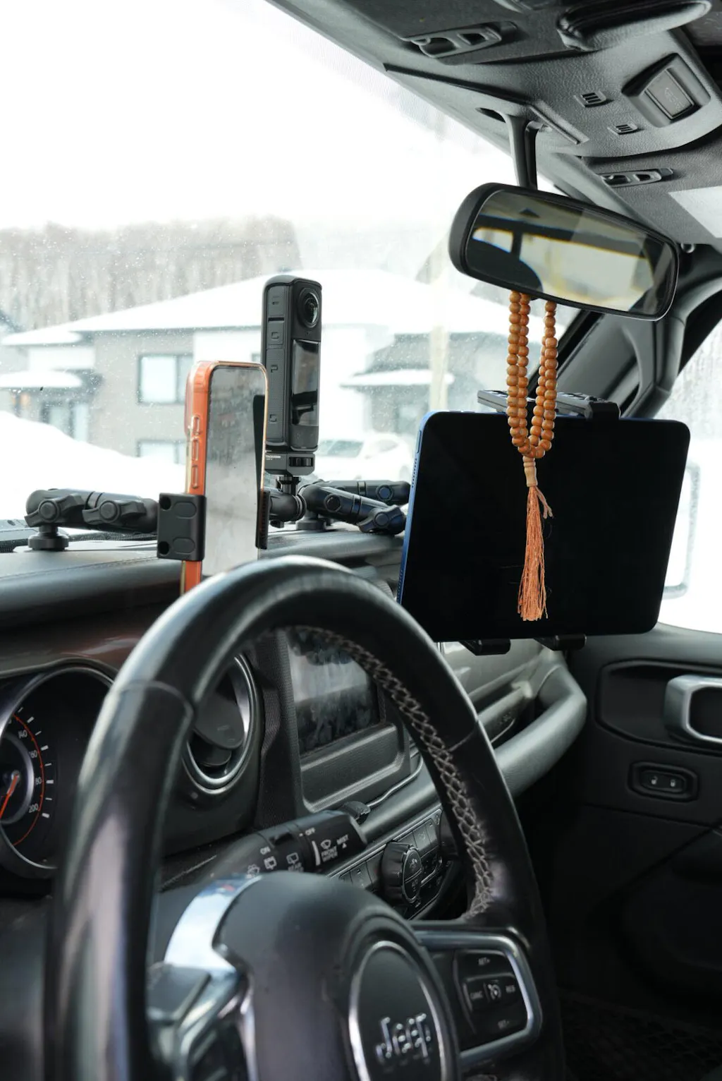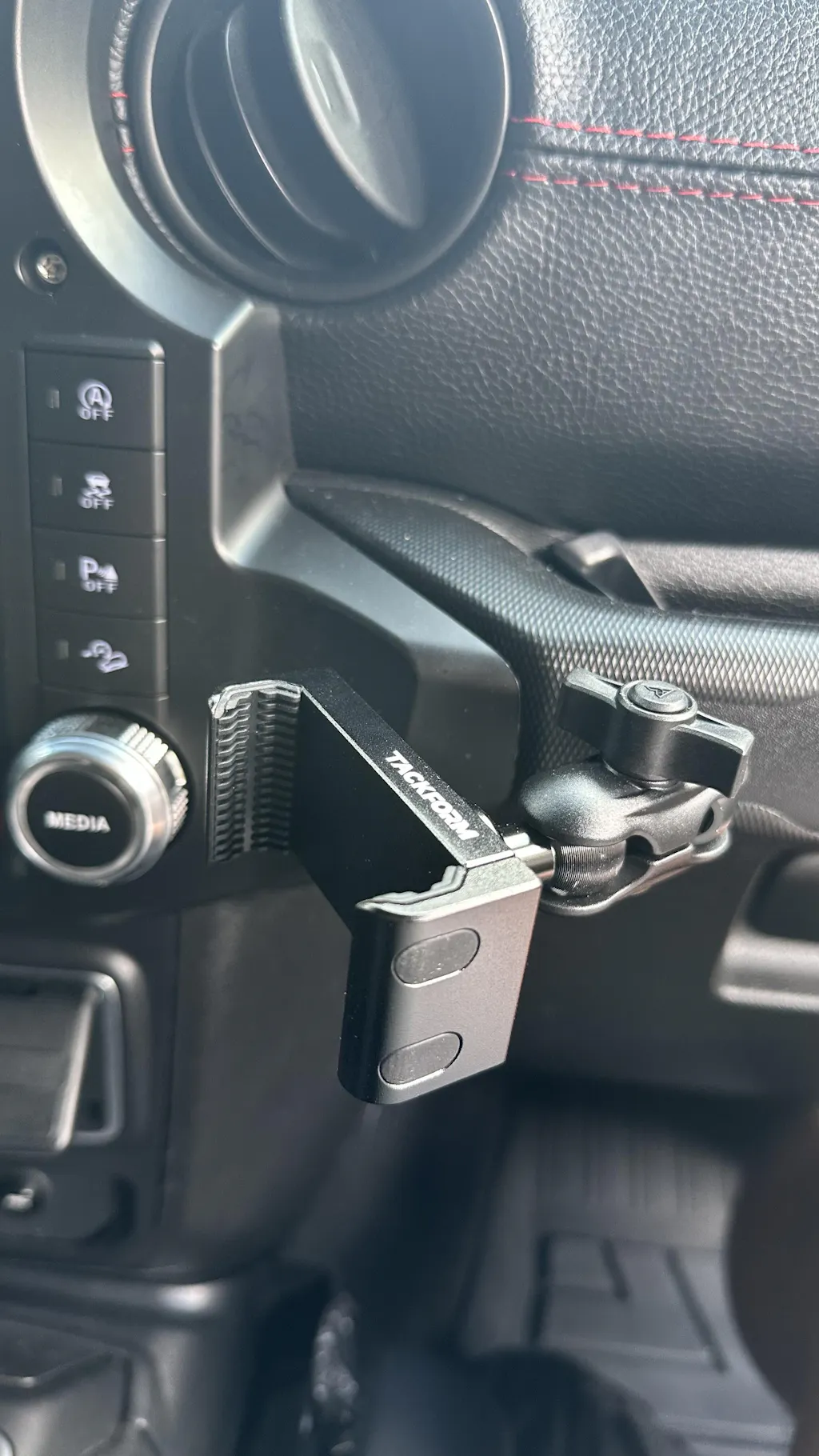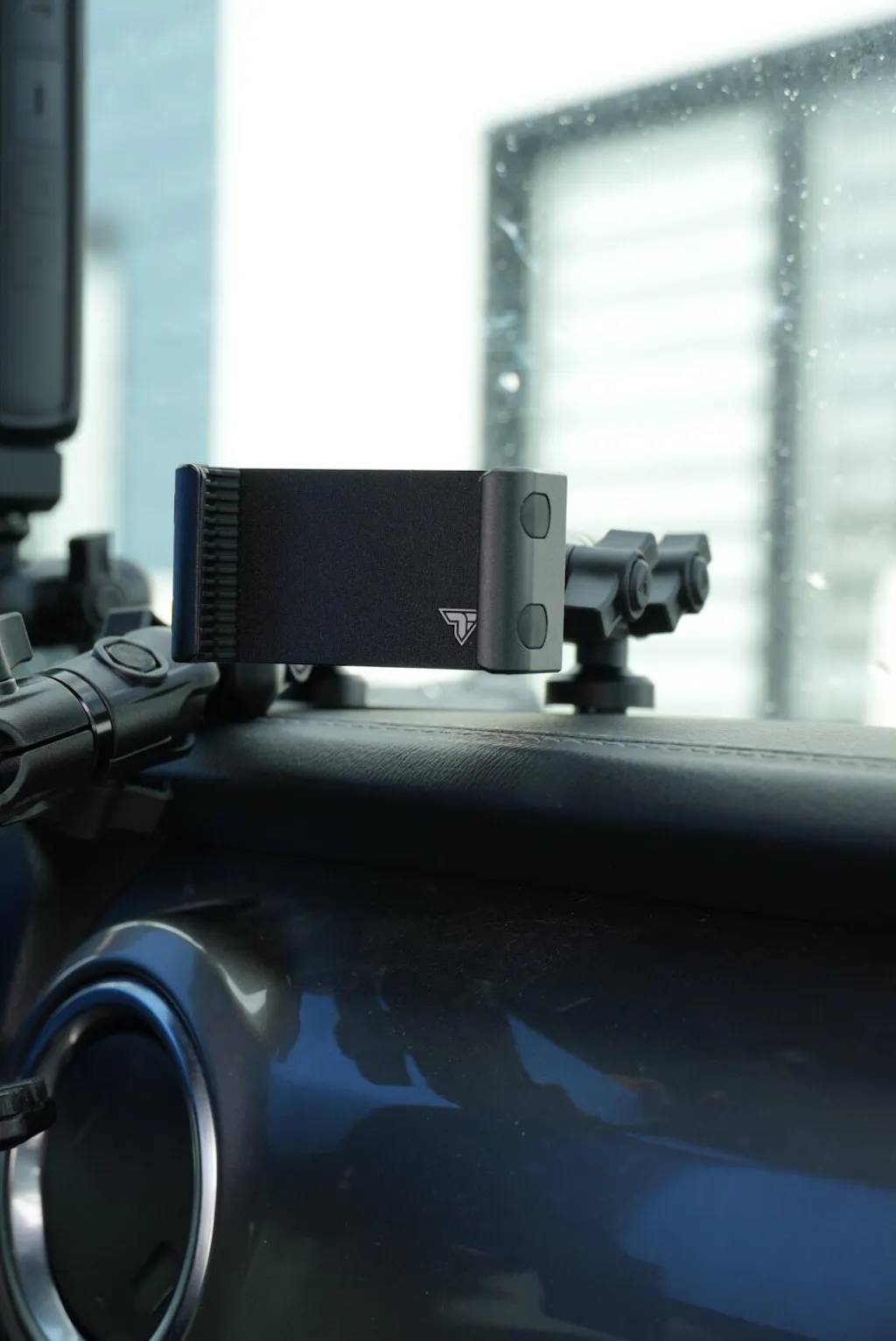While many Jeep dash brackets fit inside the tray, ours is distinctively mounted on top. Paired with a protective rubber gasket between the metal bracket and the dashboard, this design bolsters more weight and significantly reduces screen vibration.