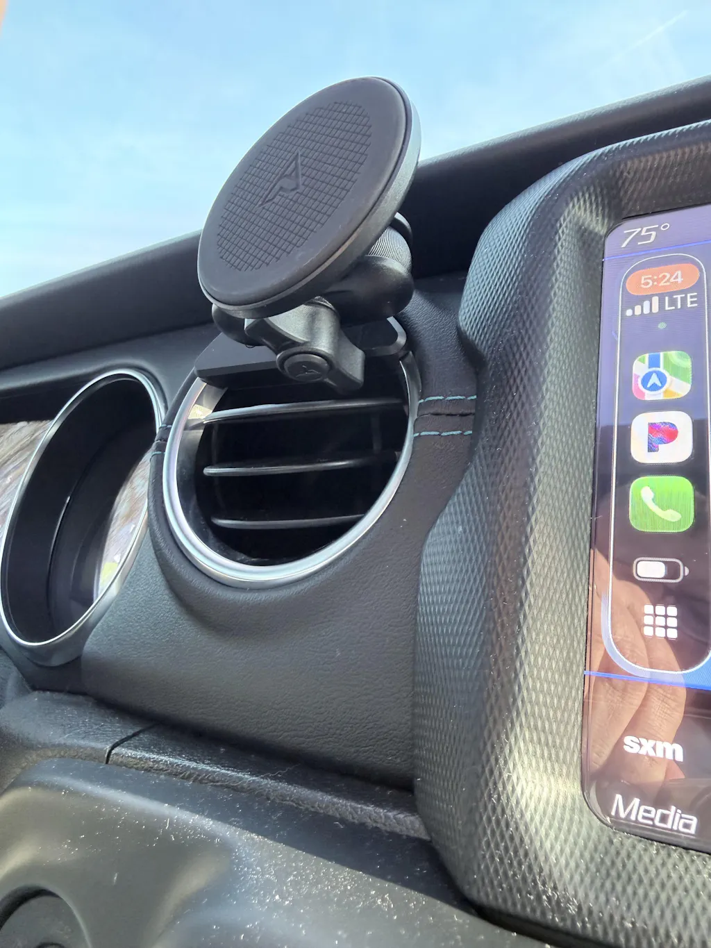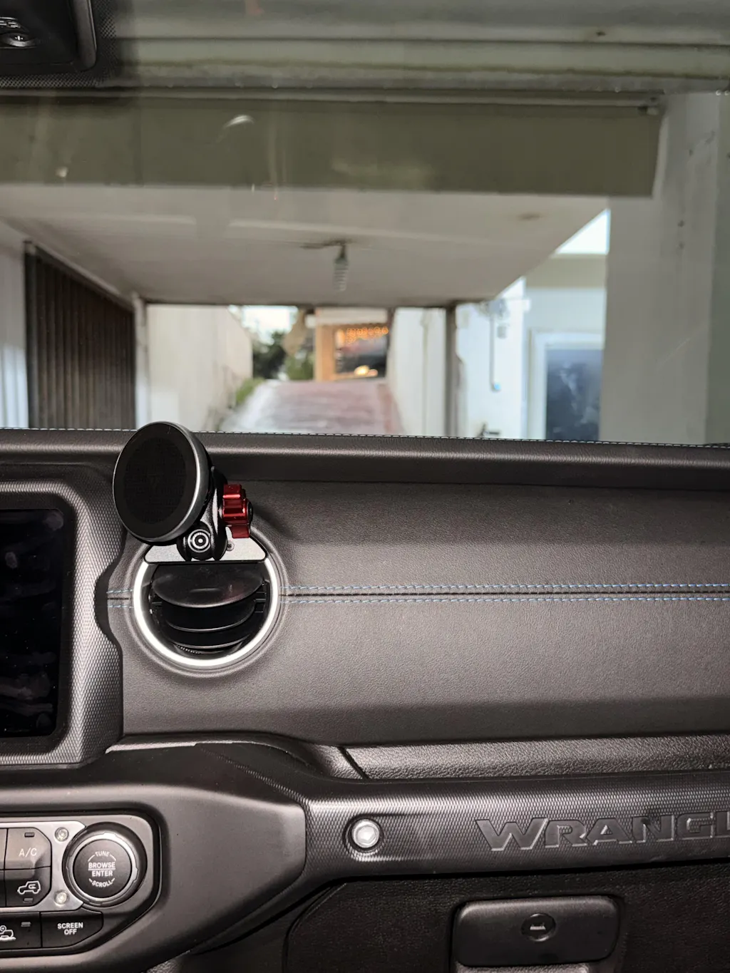 Upgrade your Jeep Wrangler JL ('18-'23), Gladiator JT ('20-'23), and Wrangler 4xe ('21-'23) with the most rugged and dependable ALL-METAL vent mounted phone holder setup on the market. Engineered to meet the demands of both on-and off-road drivers, each vent mount kit is built from high-grade 6061-T6 aluminum and CNC machined for enhanced strength and durability. Using laser scanning technology, our vent brackets are precisely designed to match the complex contours of your vent bezel, while the hardcoat anodized finish provides an OEM look and feel, seamlessly blending with your vehicle's interior.