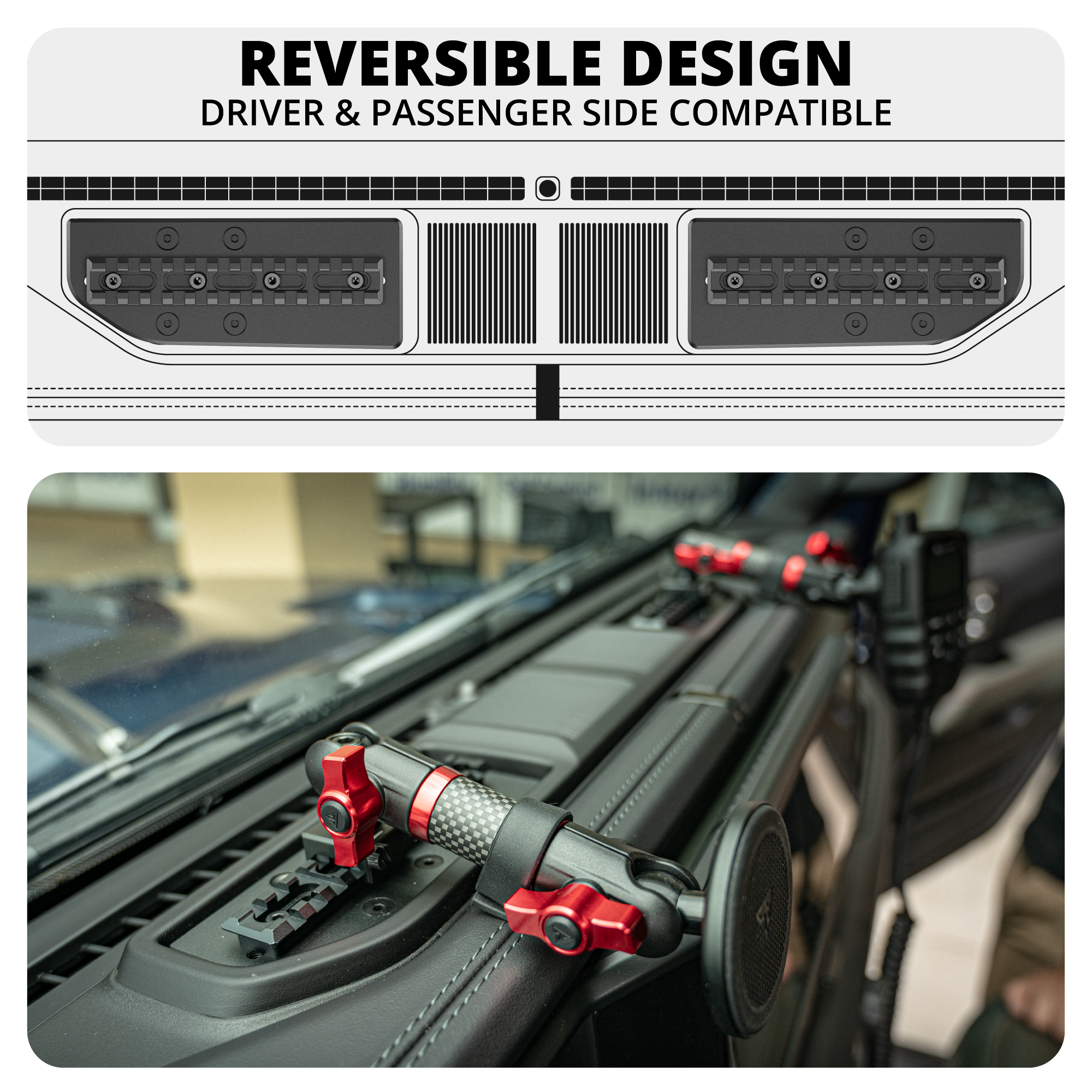 The reversible design allows for installation in either the driver or passenger side dash tray slot, giving you the freedom to configure your setup exactly how you want it. Whether you're daily driving, heading out on a weekend adventure, or building a fully outfitted rig, this flexibility ensures your phone, GPS, or comms gear is always within easy reach.