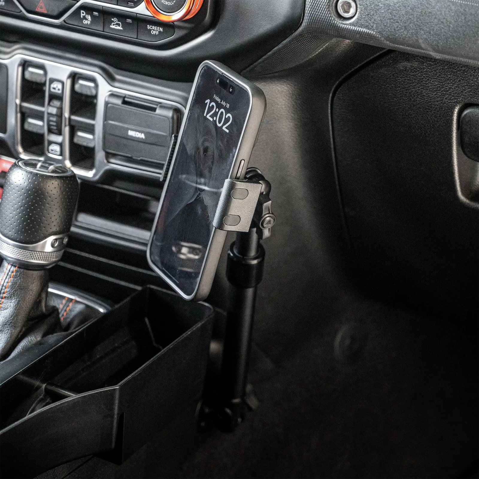 Our new Center Console Mount is purpose-built for Jeep Wrangler JL/4xe, and Gladiator JT models. See compatibility info for more details.
