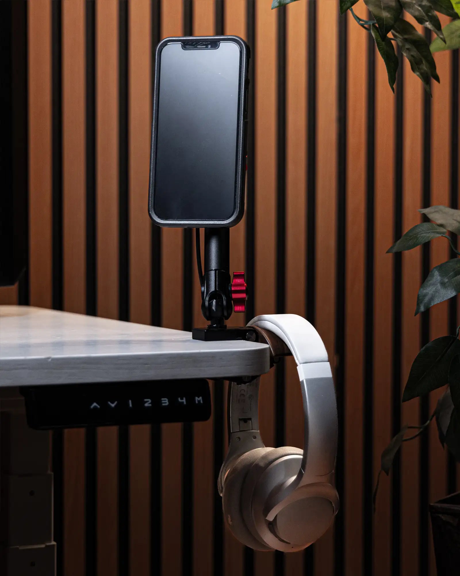 DESK CLAMP WITH MAGSAFE CHARGING PHONE HOLDER & HEADPHONE HOLDER