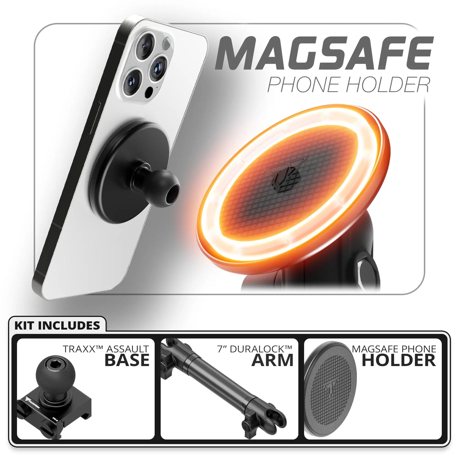 MagSafe Phone Holder | TRAXX™ - Assault Track Picatinny Base | 7" DuraLock Arm