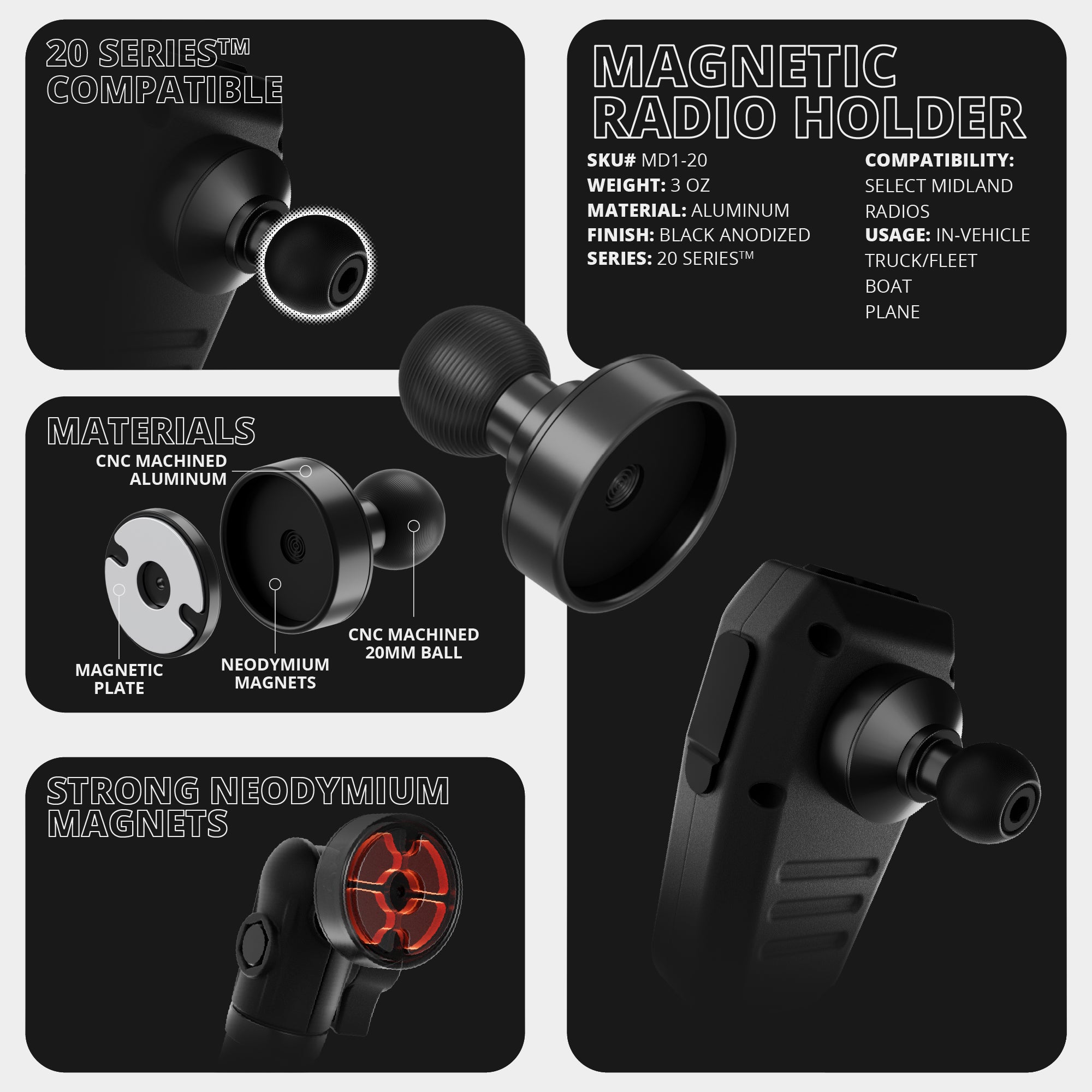 Purchased the magnetic mic holder for the Midland MXT575 unit. The quality and finish on this setup is very good! Easy to install and it just simply works!