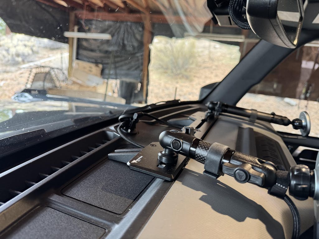 This multi-mount platform spans the entire center section of your dashboard, offering maximum real estate to configure your phone, tablet, CB radio, and more. It positions your gear for the perfect reach and visibility without obstructing your view of the trail ahead.