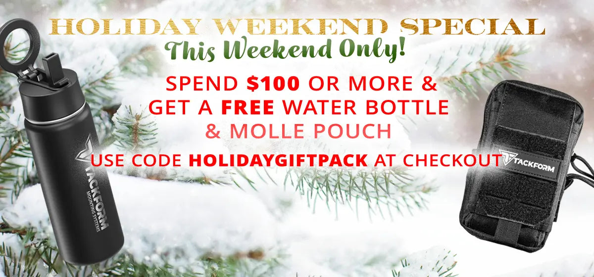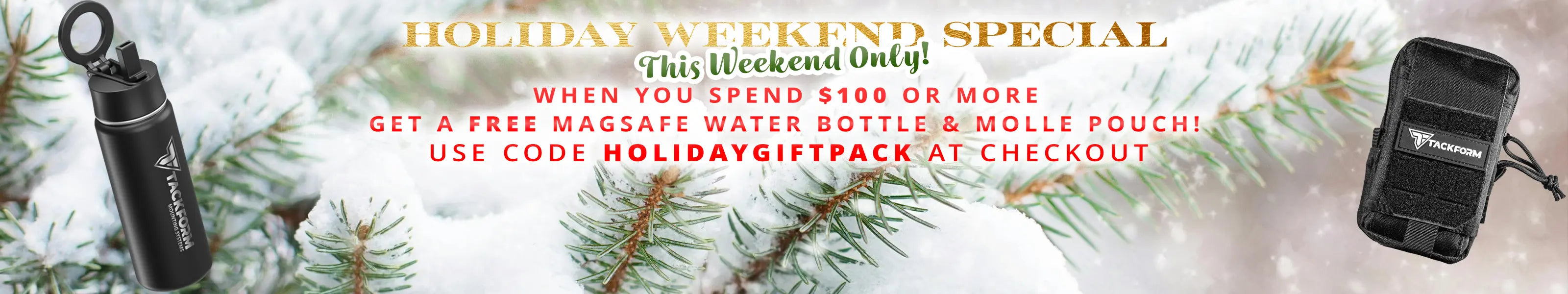 HOLIDAY WEEKEND SPECIAL: SPEND $100 OR MORE ON YOUR ORDER AND GET A FREE TACKFORM MAGSAFE WATER BOTTLE & TACKFORM MOLLE POUCH!