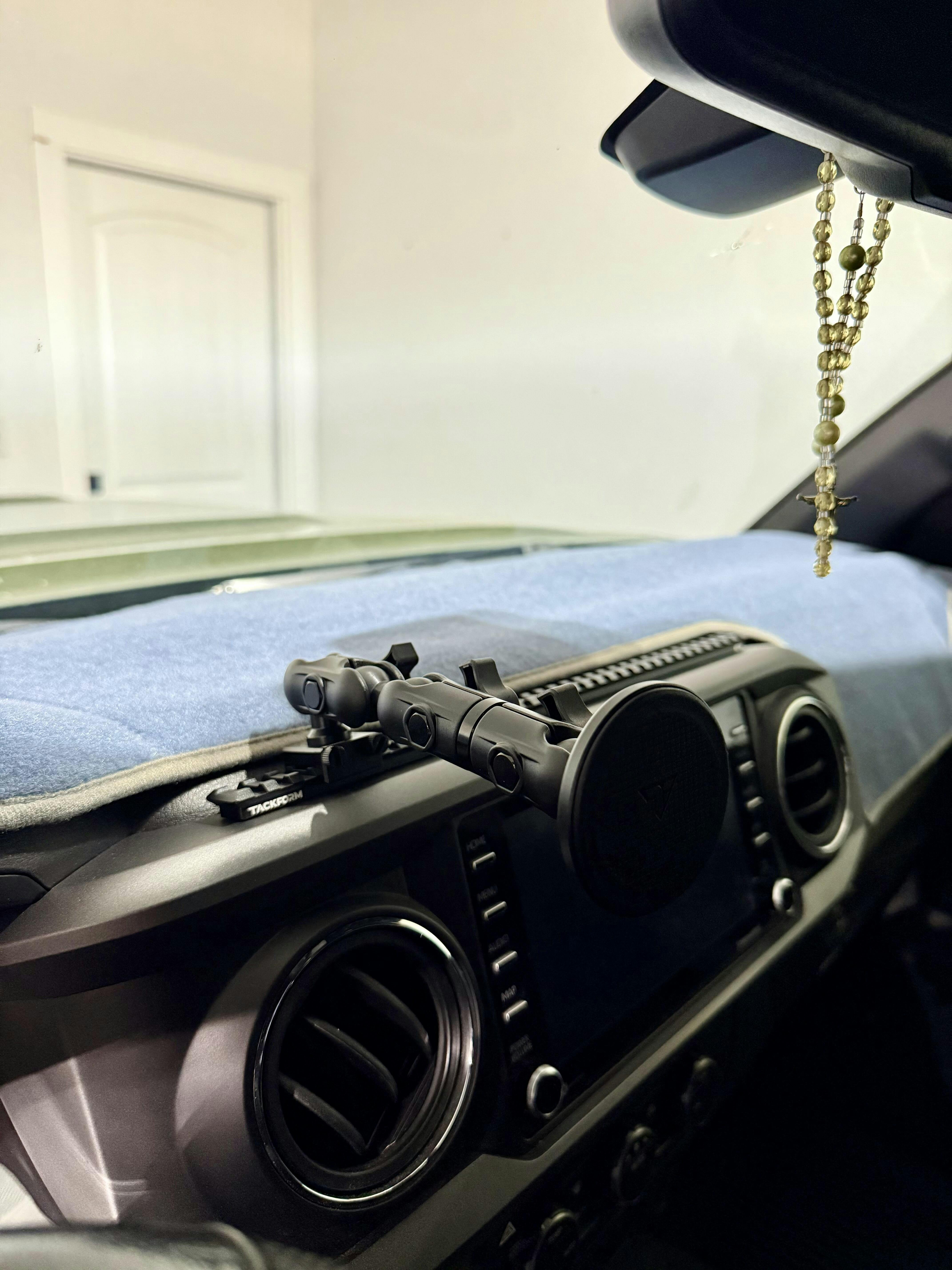 Experience the strongest, most reliable, ALL-METAL dash-mounted phone mount setup for your 3rd Gen Toyota Tacoma (2016-2023). Engineered to meet the demands of both on-and off-road drivers, each Tacoma dash kit is built from high-grade 6061-T6 aluminum and CNC machined for enhanced strength and durability. Using laser scanning technology, our dash brackets are precisely designed to match the complex contours of your dashboard, while the hardcoat anodized finish provides an OEM look and feel, seamlessly blending with your vehicle's interior.