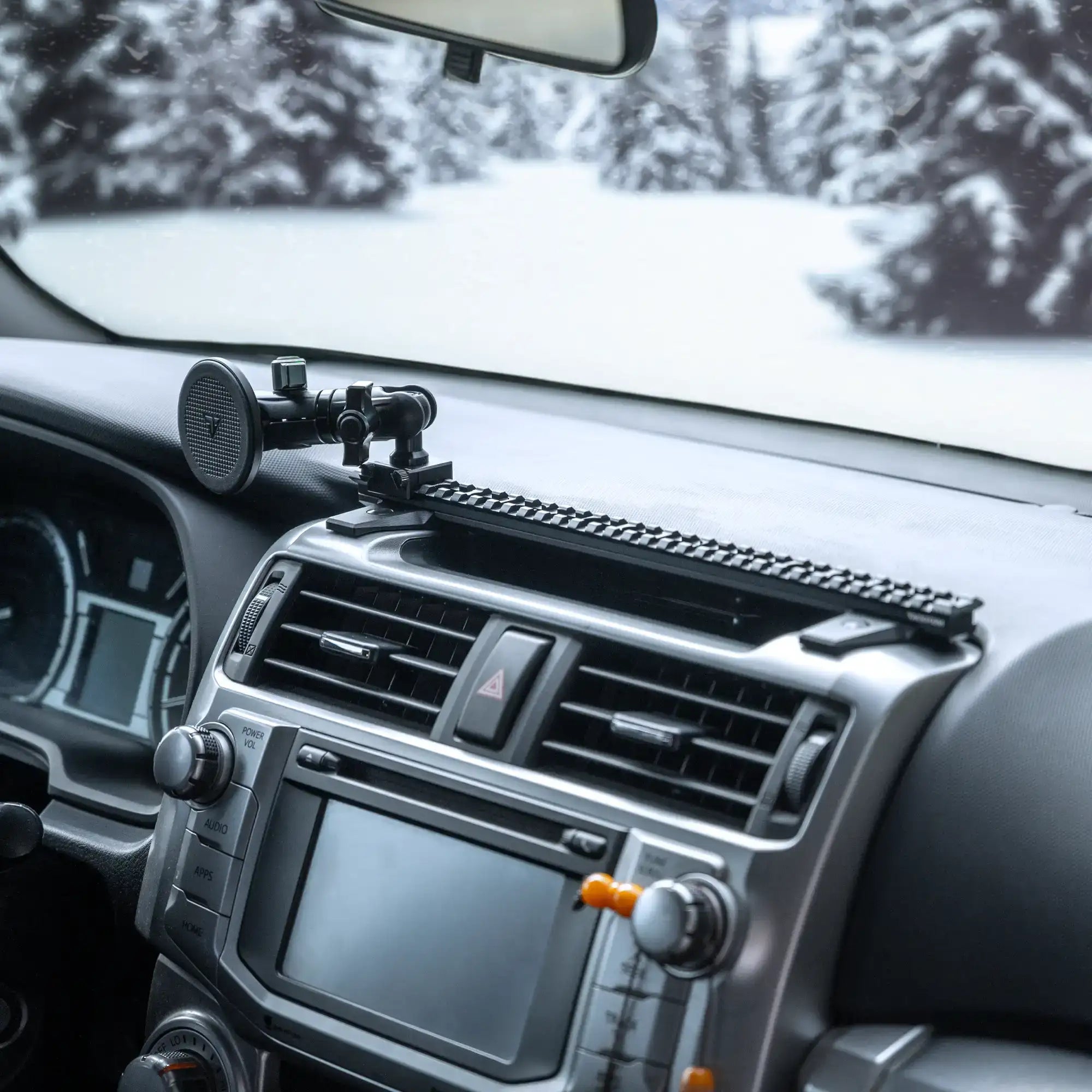While 'grid-style' dash mounts are trendy, they can be a nightmare when trying to install, move, or reposition your mounting bases. With our intuitive Assault Track system, you’ll never have to fumble with nuts again. Capable of comfortably holding a variety of devices, the Assault Track system features a CNC-machined billet aluminum picatinny rail, allowing you to quickly add, remove, or reposition your mounts in seconds with nothing more than a house key.