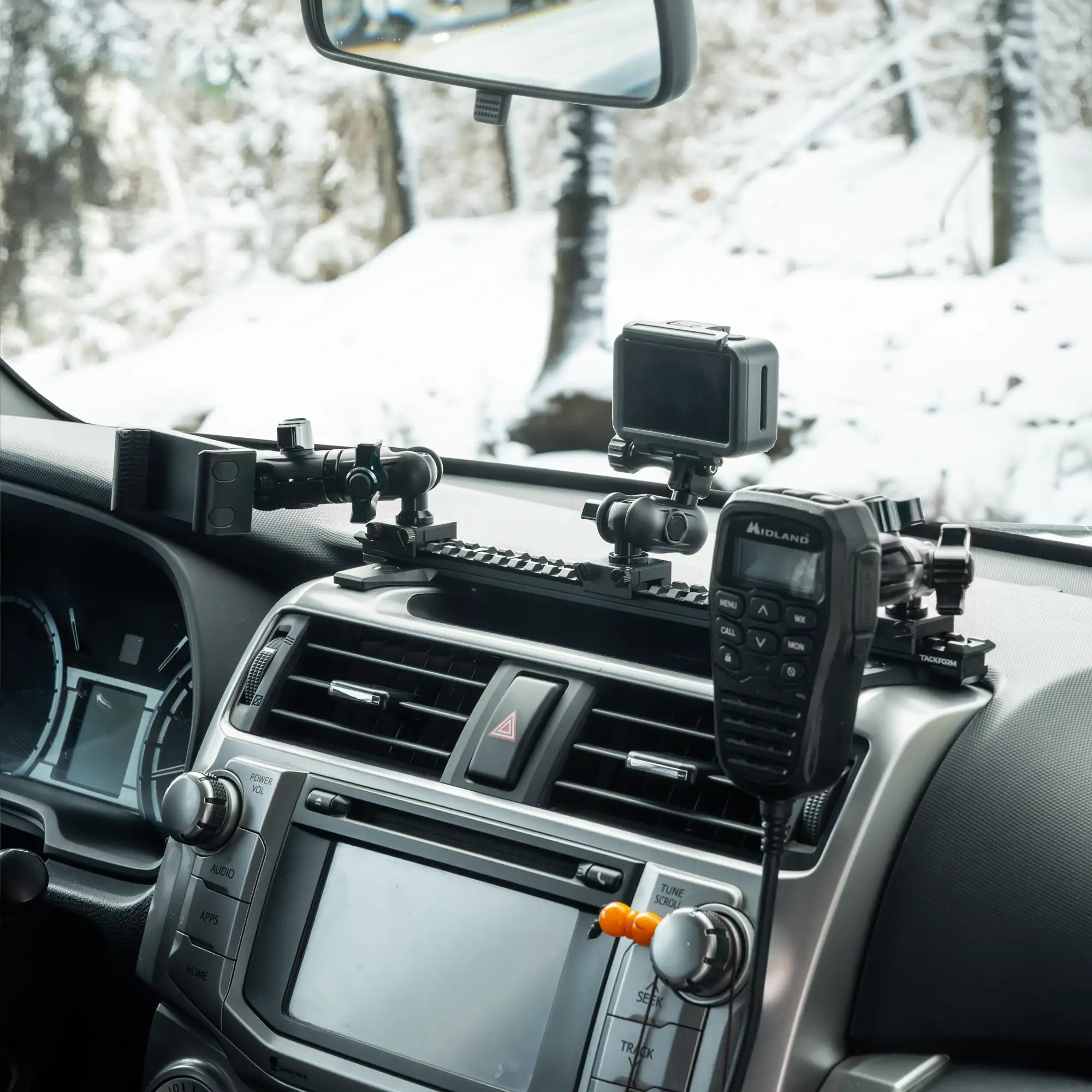 While 'grid-style' dash mounts are trendy, they can be a nightmare when trying to install, move, or reposition your mounting bases. With our intuitive Assault Track system, you’ll never have to fumble with nuts again. Capable of comfortably holding a variety of devices, the Assault Track system features a CNC-machined billet aluminum picatinny rail, allowing you to quickly add, remove, or reposition your mounts in seconds with nothing more than a house key.