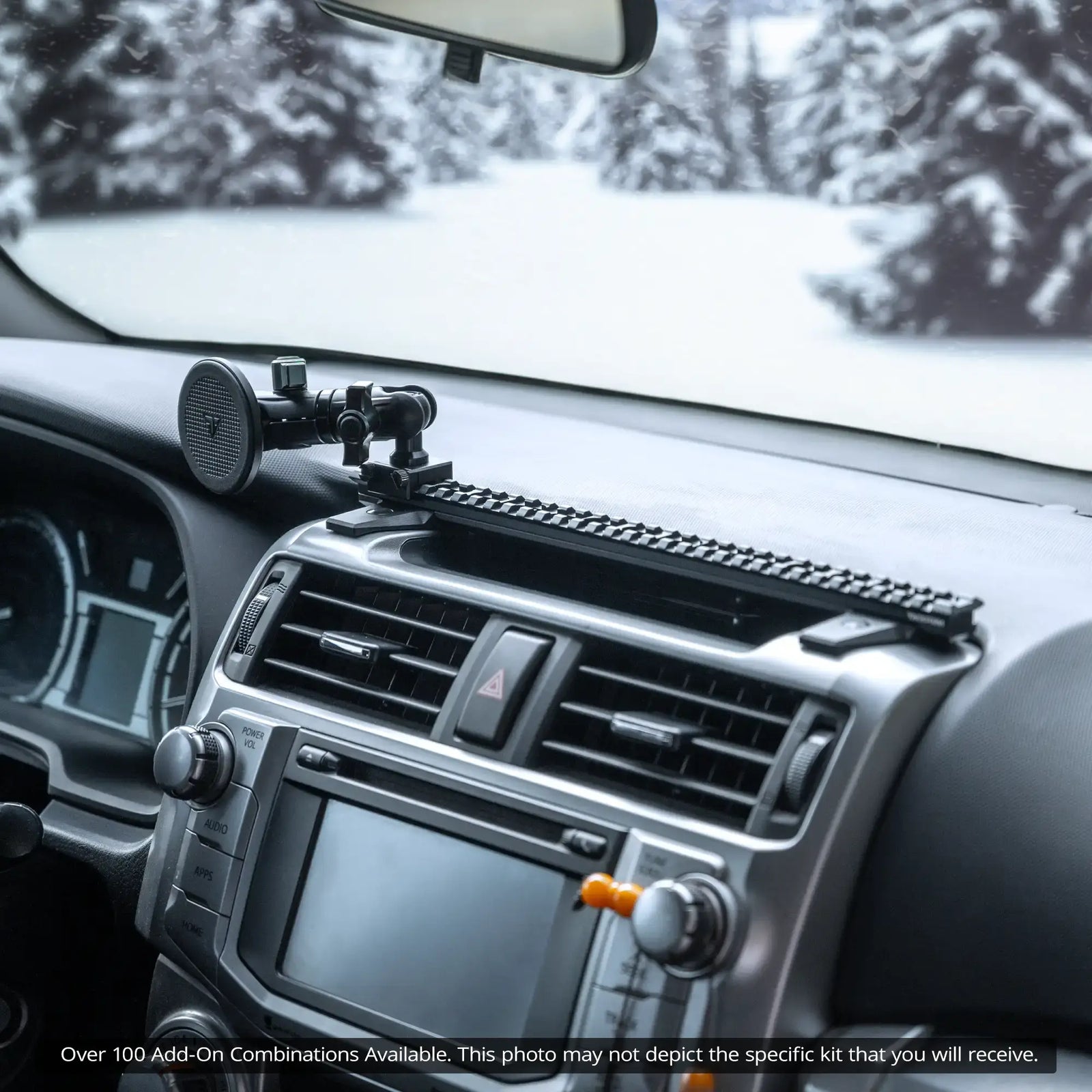 While 'grid-style' dash mounts are trendy, they can be a nightmare when trying to install, move, or reposition your mounting bases. With our intuitive Slim Track system, you’ll never have to fumble with nuts again. Capable of comfortably holding a variety of devices, the Slim Track system features a CNC-machined top plate with an integrated track system, allowing you to quickly add, remove, or reposition your mounts in seconds.