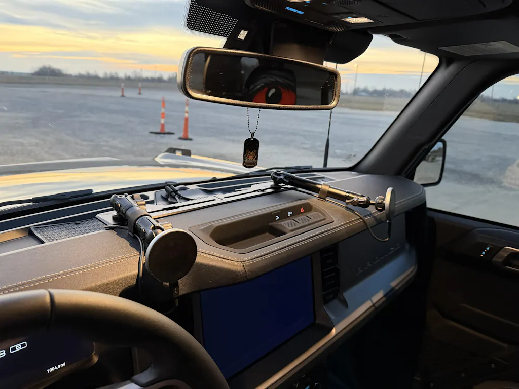 Transform your dashboard from a passive space into an active control hub with a Tackform mount stack. Our multi-mount dash bracket provides the necessary structure and expansive mounting capability to fully utilize your Bronco's dash for navigation, communication, or content creation like never before.